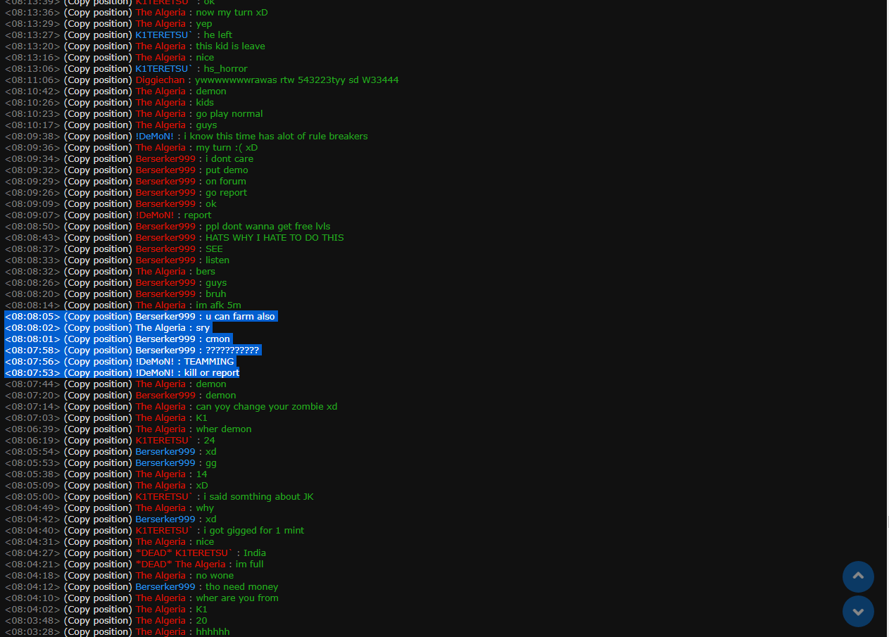 - Reason of complaint:teamming and farming xp by teamming and bad word