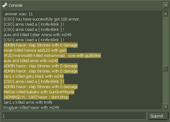 So in this morning i was playing then i got swarmed by i bunch of zombies then i started spam jumping without strafing, and one of the admins named "haxor" started slapping me for "bhoping" and i was literally spam jumping and i already explained it to artic before and he said it's fine, i asked him for proof or records and but he didn't want to show me. Well if i knew that i would get slapped / warned for bhoping i would've had a lot of demos ready for the report but it is what it is.