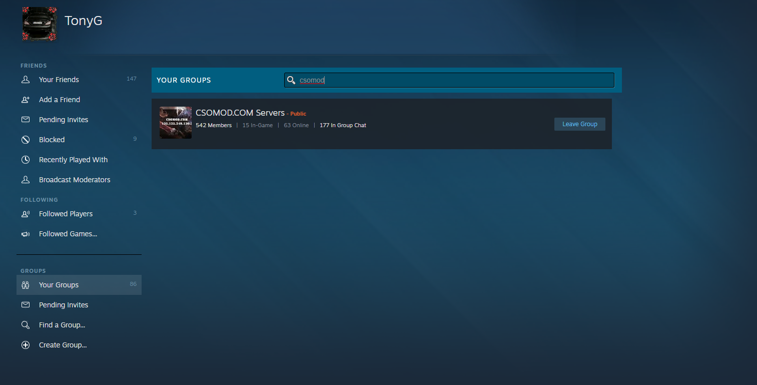 [CSO] - Free Slot for Steam players DunHill August 27, 2022 at 5:58 PM Nickname :DunHillSteam Profile Link :https://steamcommunity.com/id/T0NiT0Ni123/Steam Game Library Picture proof for CS 1.6 (If your profile or games are hidden):Joined our Steam Group :yes