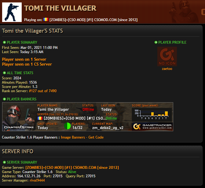 Slot request Tomi the Villager March 14, 2021 at 4:20 AM 1. Tomi the Villager2. 173. Slovakia 4. 3-4 hours daily5. https://www.gametracker.com/player/Tomi%20…omod.com:27015/6. The server is full a lot of times and I would love to play more.Thank you for reading through my request!
