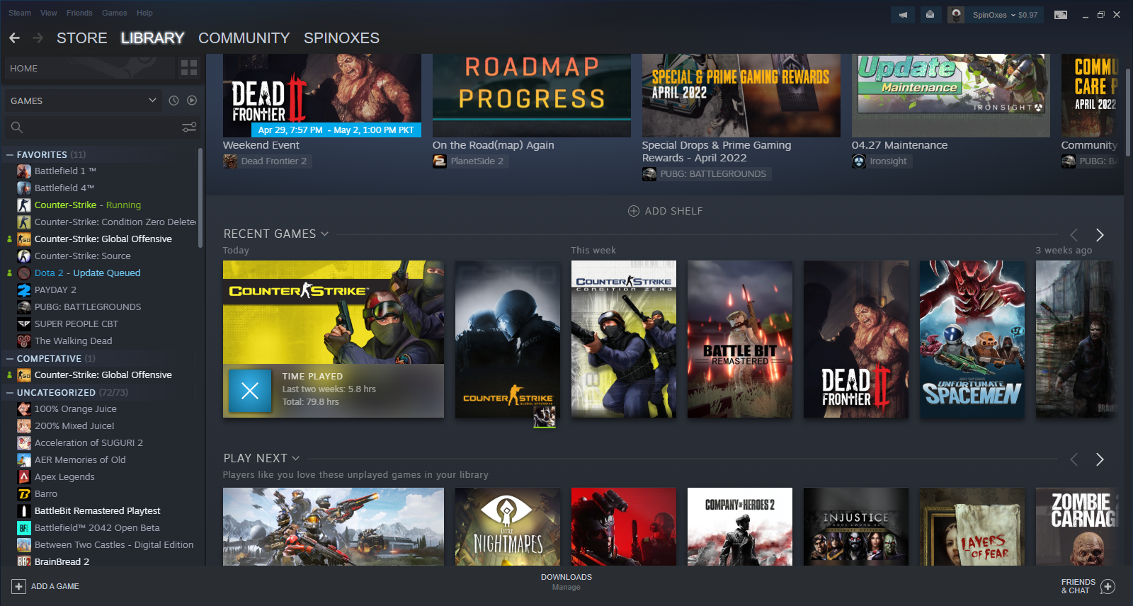 [CSO] - Free Slot for Steam players xxx*Universal May 1, 2022 at 12:07 PM Quote from Carbon Can you show your steam game library I've made it public u can check it. https://steamcommunity.com/id/SpinOxes/