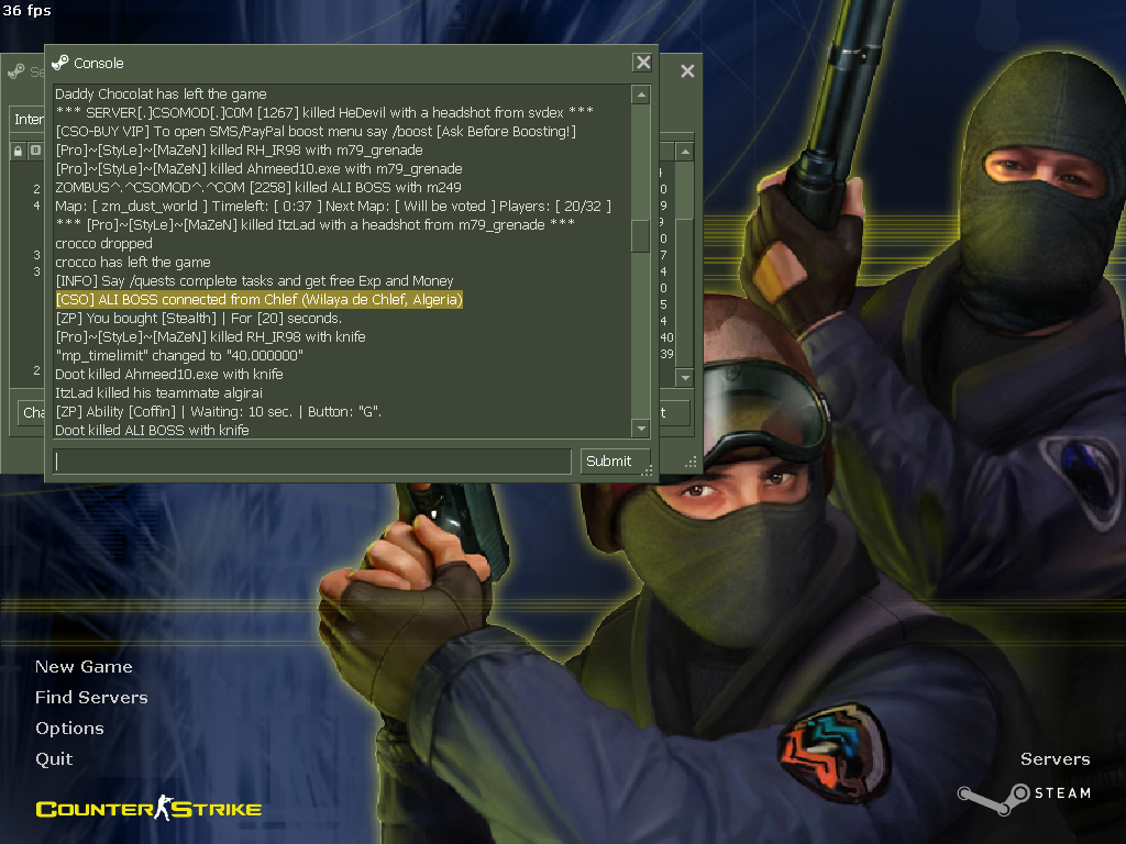 [CSOBans] ZOMBUS~.~CSOMOD~.~C0M [4806] has been BANNED Permanently from the Server BY ItzLad. [ Reason - "Speedhacking" ]