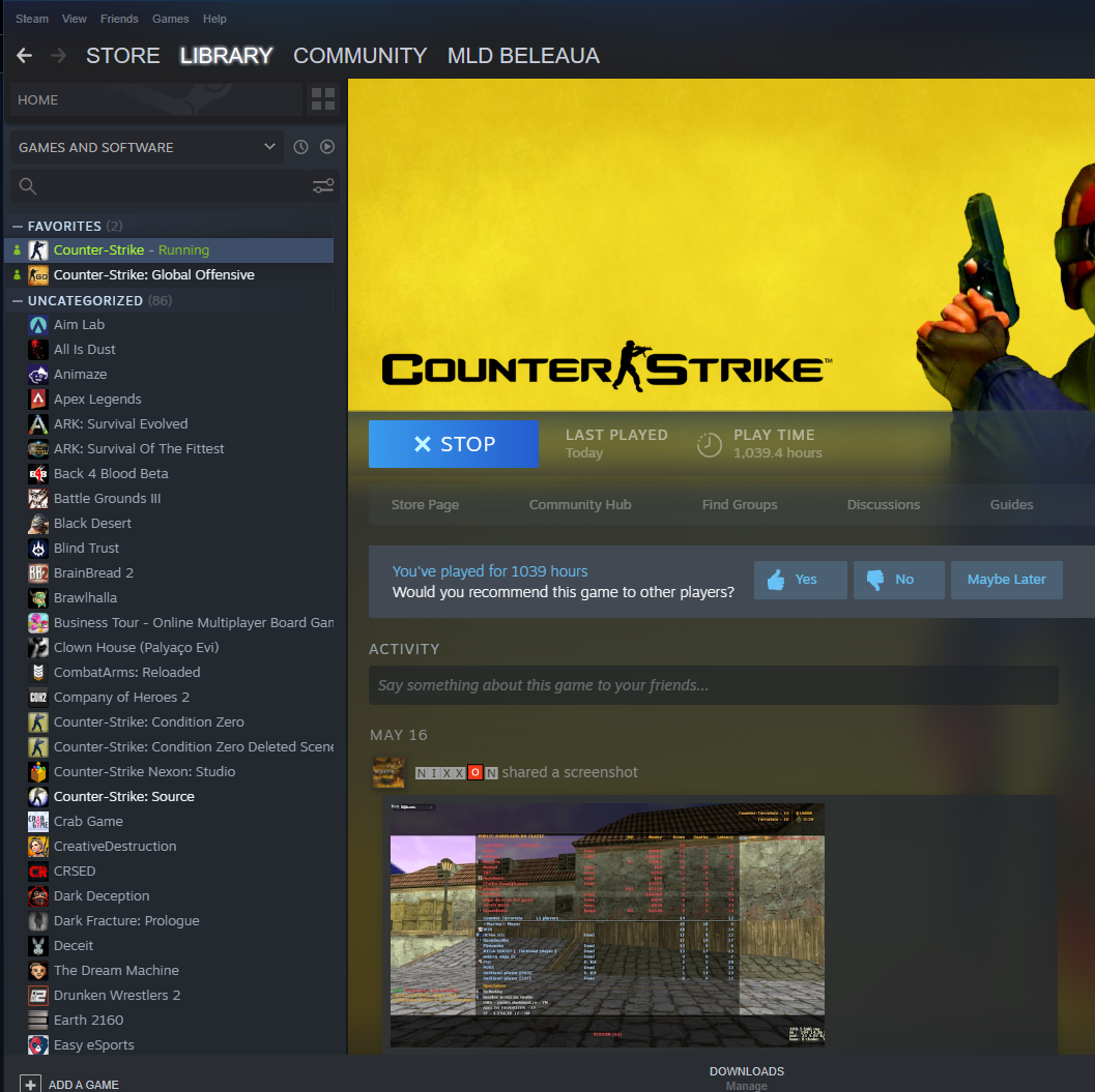 Steam Game Library Picture proof for CS 1.6 (If your profile or games are hidden):