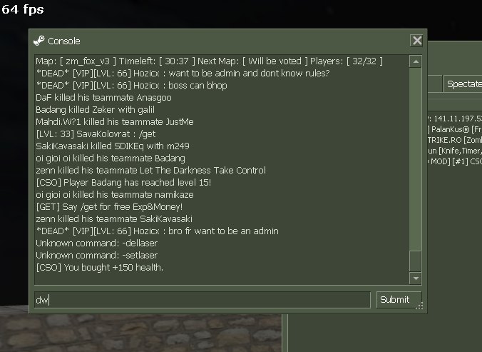 - Reason of complaint: Teaming with a zombie not shooting it, so it kills afks for him and attacks me when i try to kill them + Bhop!