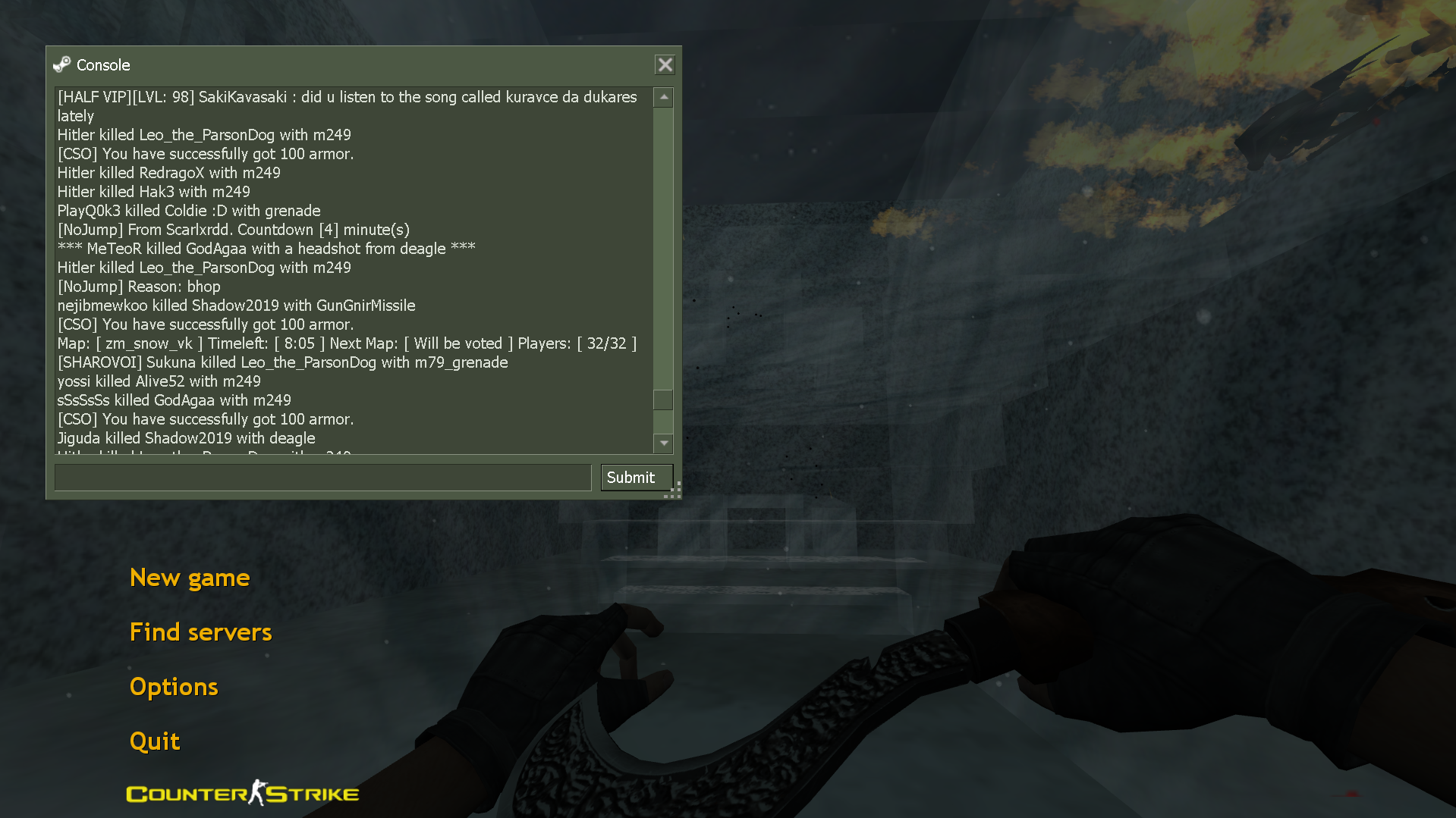 - Reason of complaint: False No jump | All I was trying is to avoid headshots/bullets in a crouch spot by continously jumping which wasn't leading me anywhere as normal bhop would because I was being shot at. This guy does no jump to everyone he sees that bhops onice. Why did I buy a vip on a server for lifetime if I'm going to be bullied by admins which pay to work for free. Thanks!