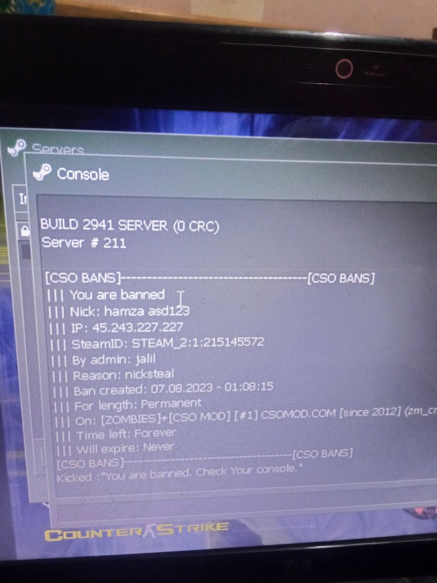 It's not me it's my little bro I swear I don't play cso at this time I was sleeping and at morning I see the message