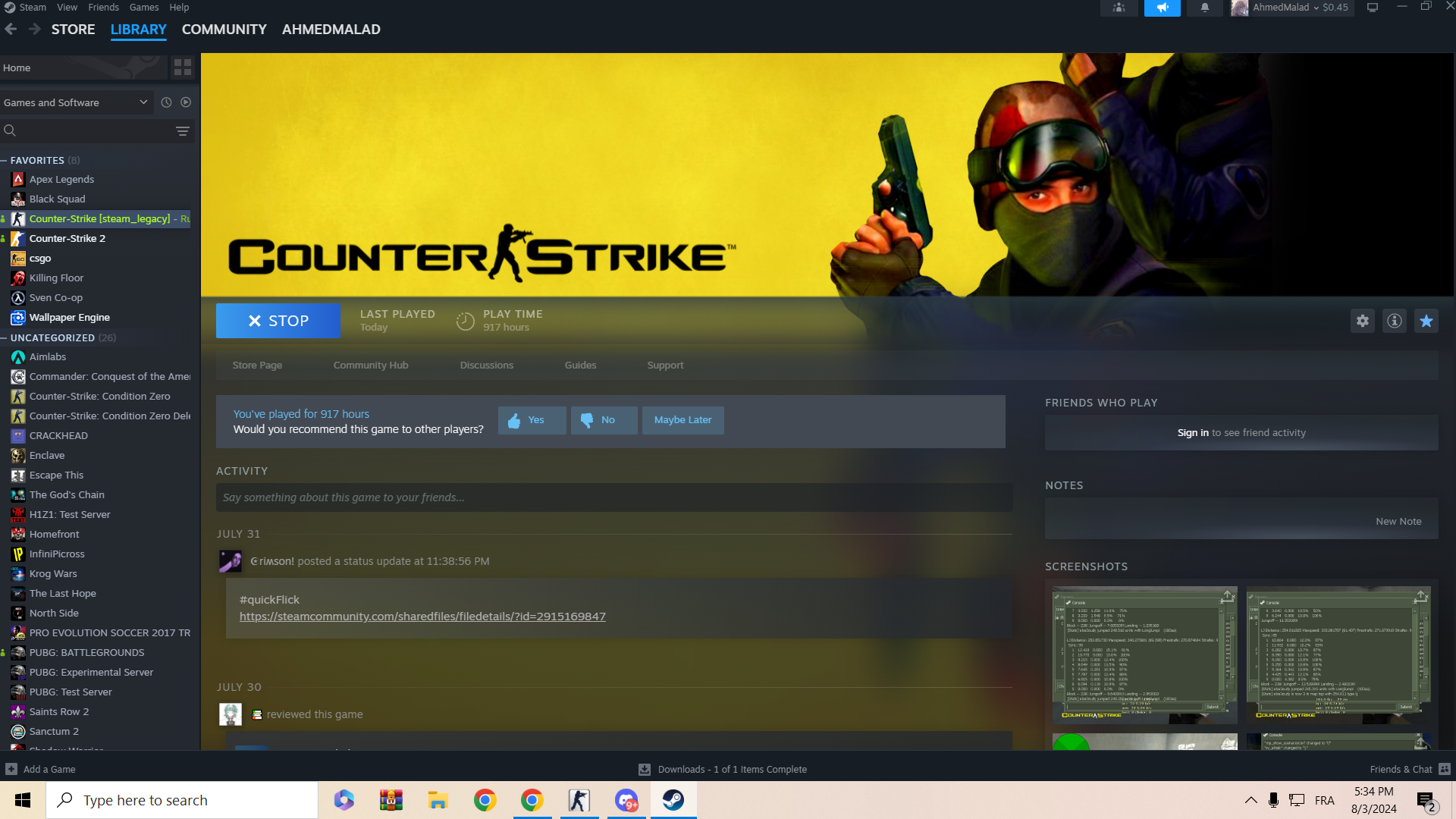 Steam Game Library Picture proof for CS 1.6 (If your profile or games are hidden): N/A