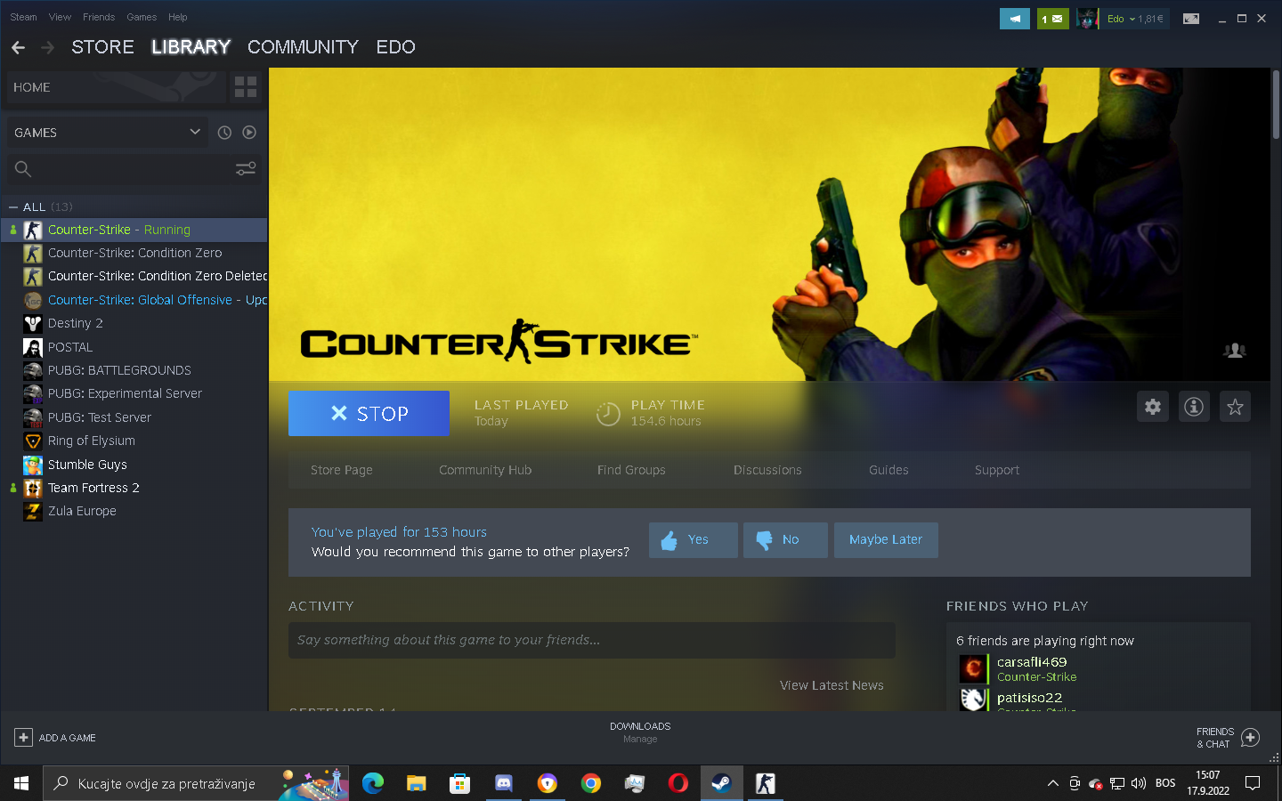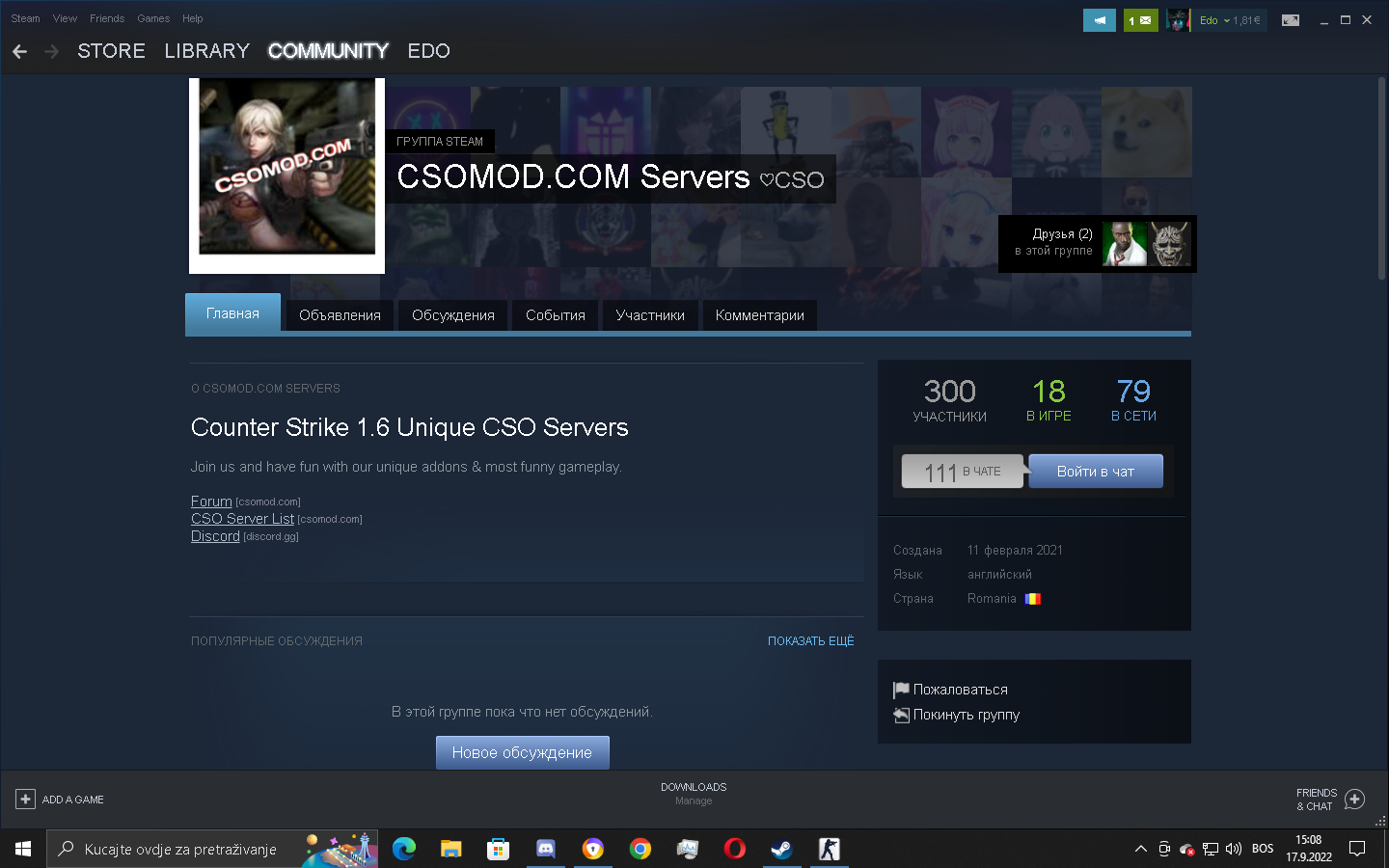 [CSO] - Free Slot for Steam players Edo September 17, 2022 at 4:08 PM Nickname : EdoSteam Profile Link : https://steamcommunity.com/id/edishusenovic/Steam Game Library Picture proof for CS 1.6 (If your profile or games are hidden):