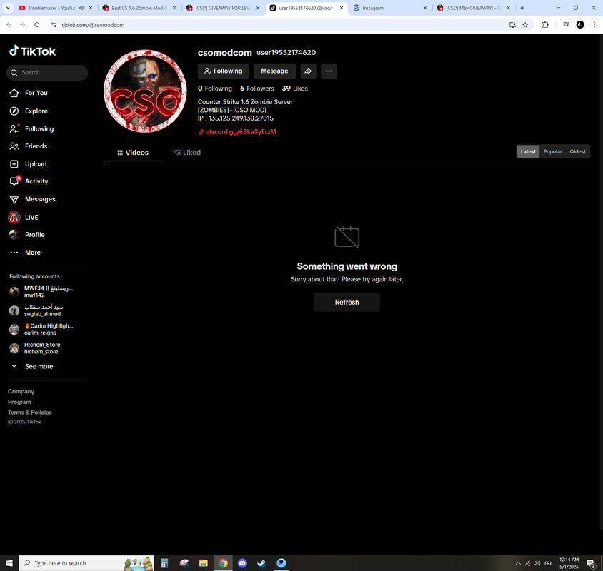 [CSO] May GIVEAWAY! Panikouu May 1, 2025 at 2:16 AM 1. Name tag: Panikouu2. Reason you join this giveaway: free vip3. Tag friends: CryEn Desktop Screenshot 2025 05 01 00 14 20 05 — Postimages postimg.cc Desktop Screenshot 2025 05 01 00 14 37 12 — Postimages postimg.cc