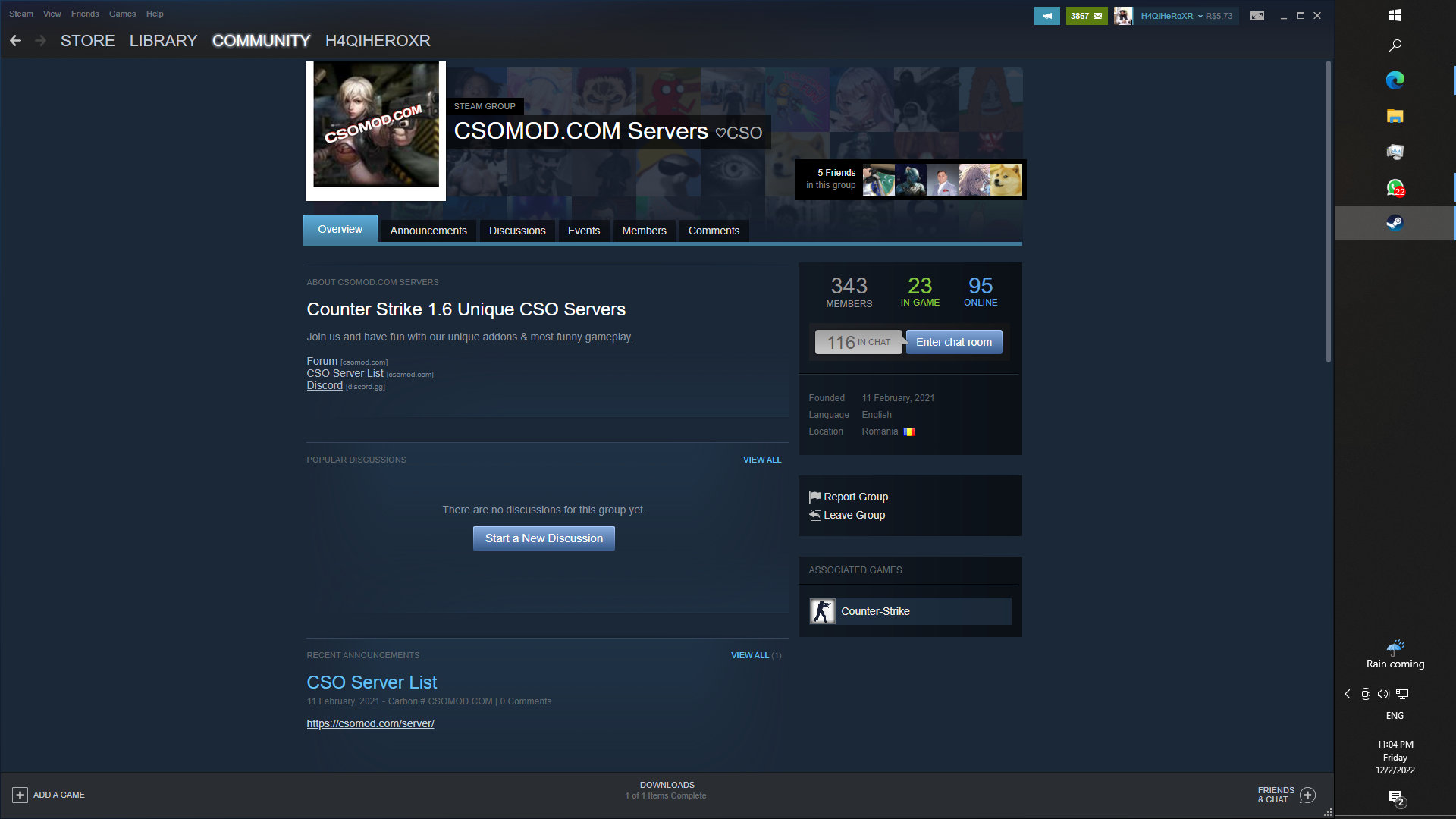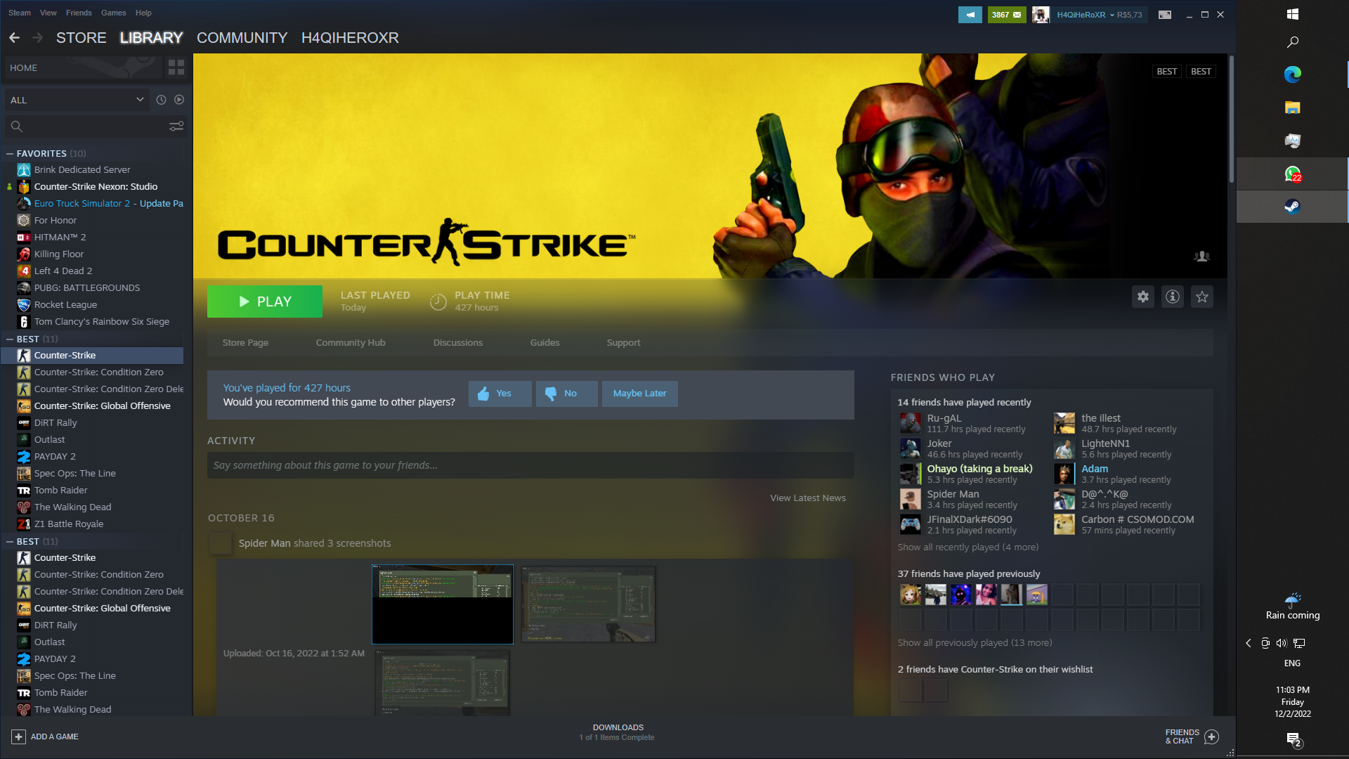 Steam Game Library Picture proof for CS 1.6 (If your profile or games are hidden):