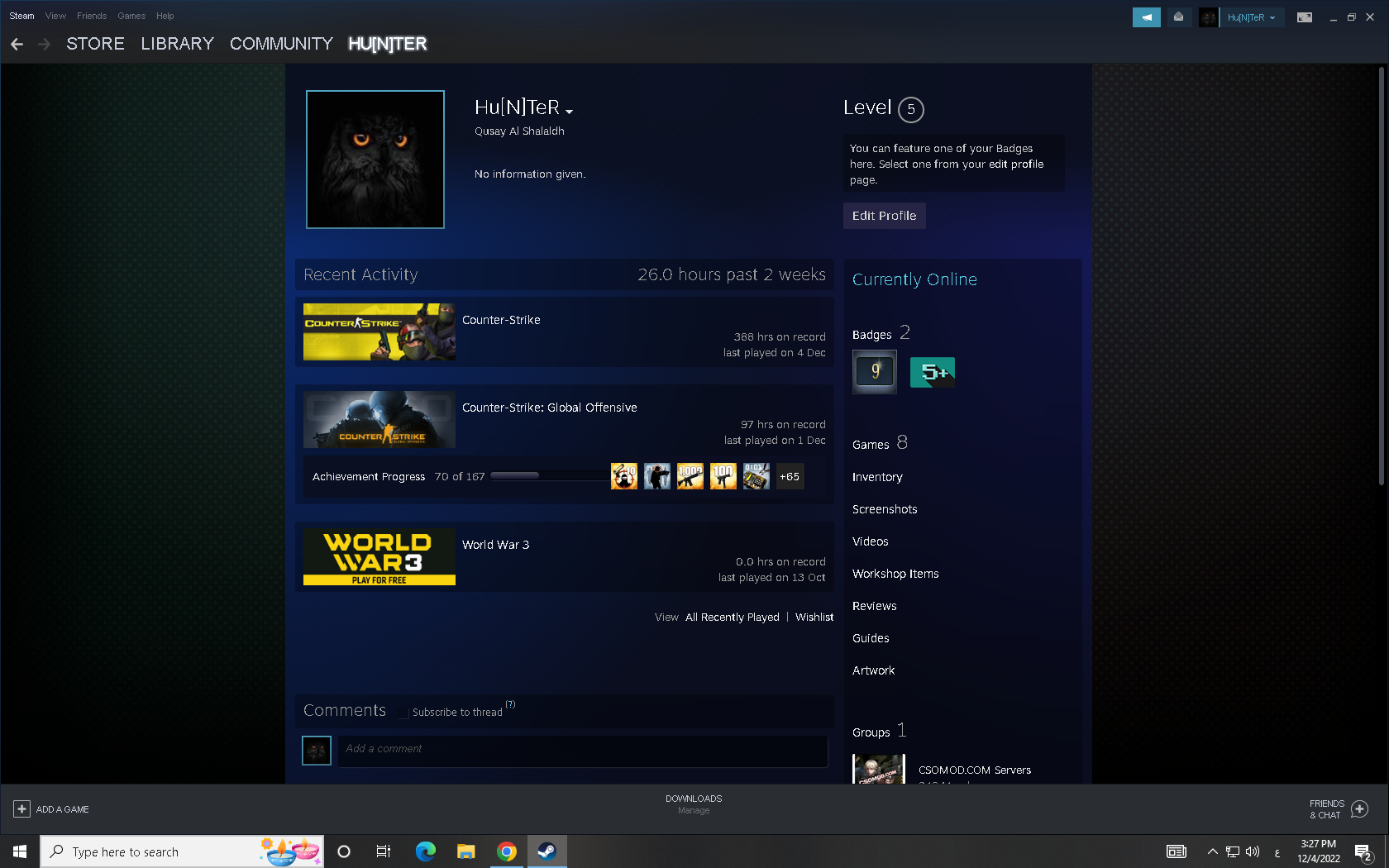 Steam Game Library Picture proof for CS 1.6 (If your profile or games are hidden): public profile