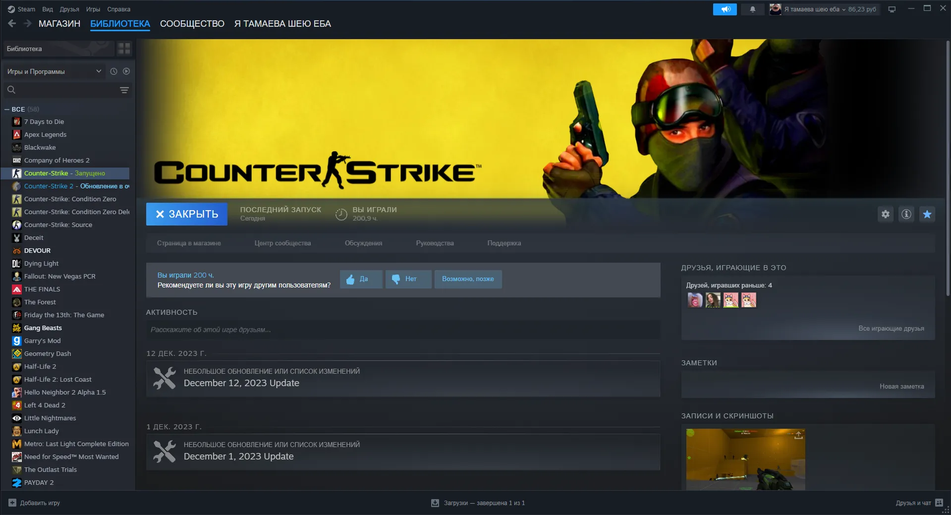 Доказательство изображения библиотеки игр Steam для CS 1.6 (если ваш профиль или игры скрыты):профиль открыт