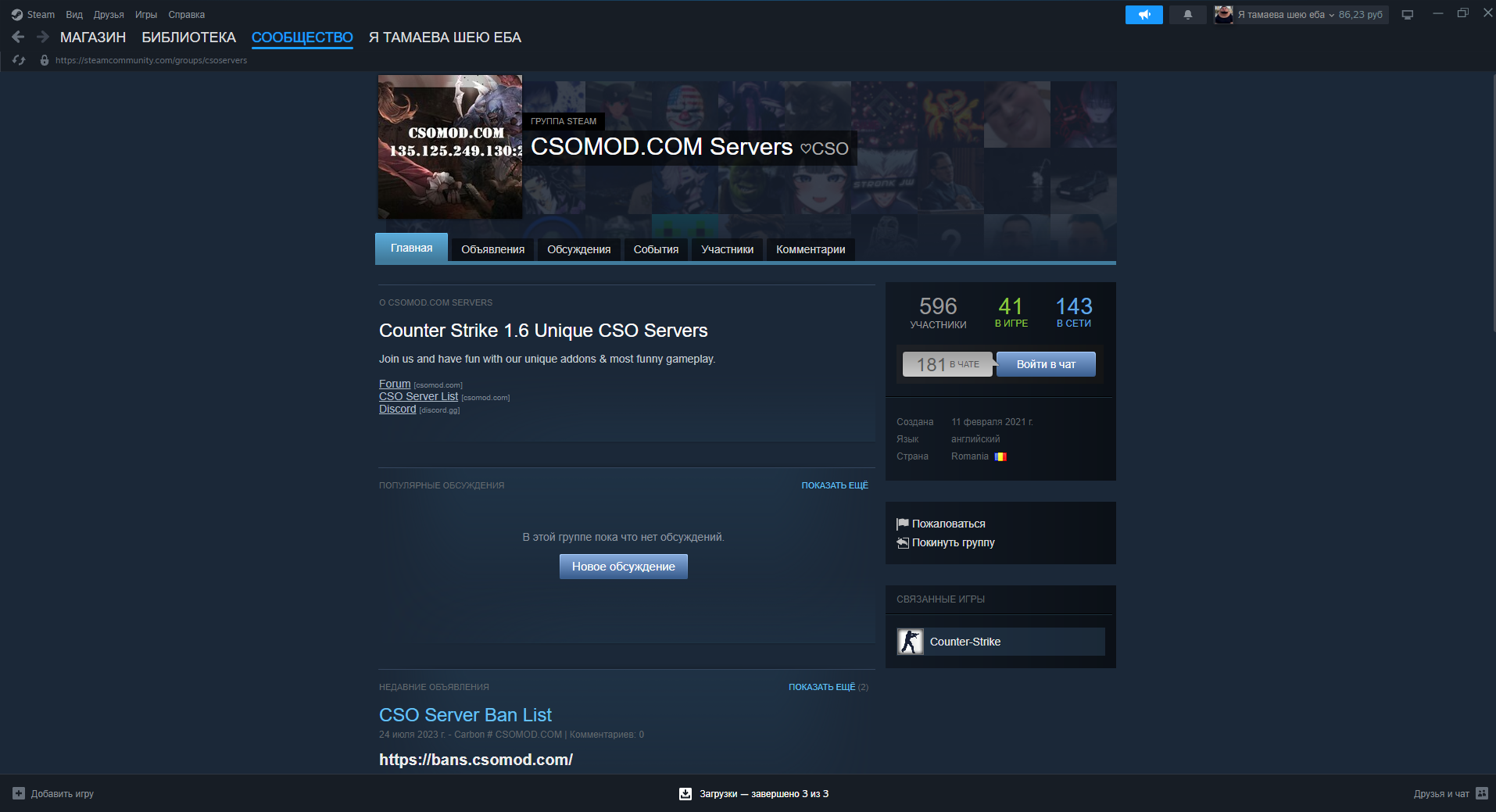 Присоединяйтесь к нашей группе Steam: присоединился