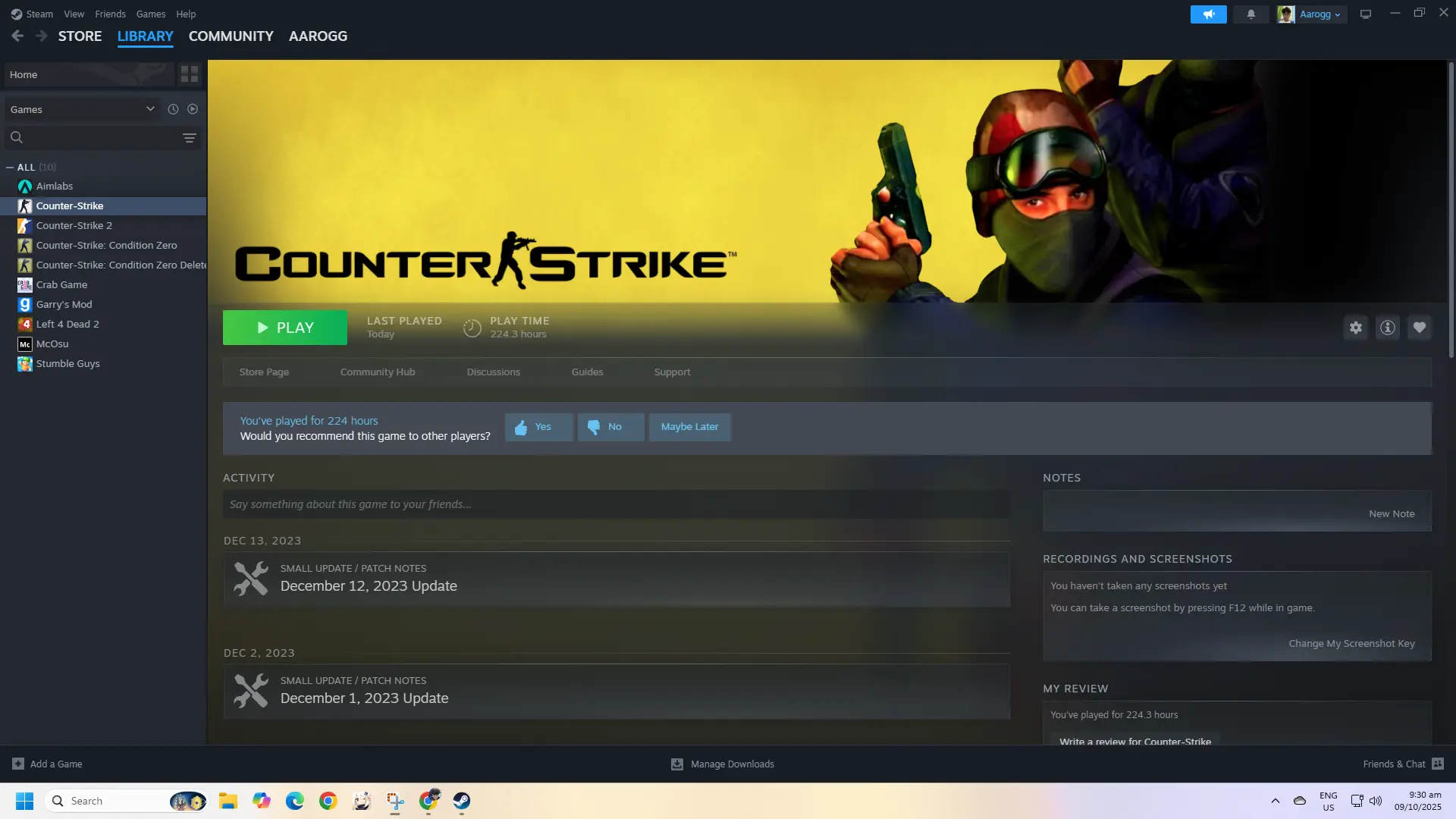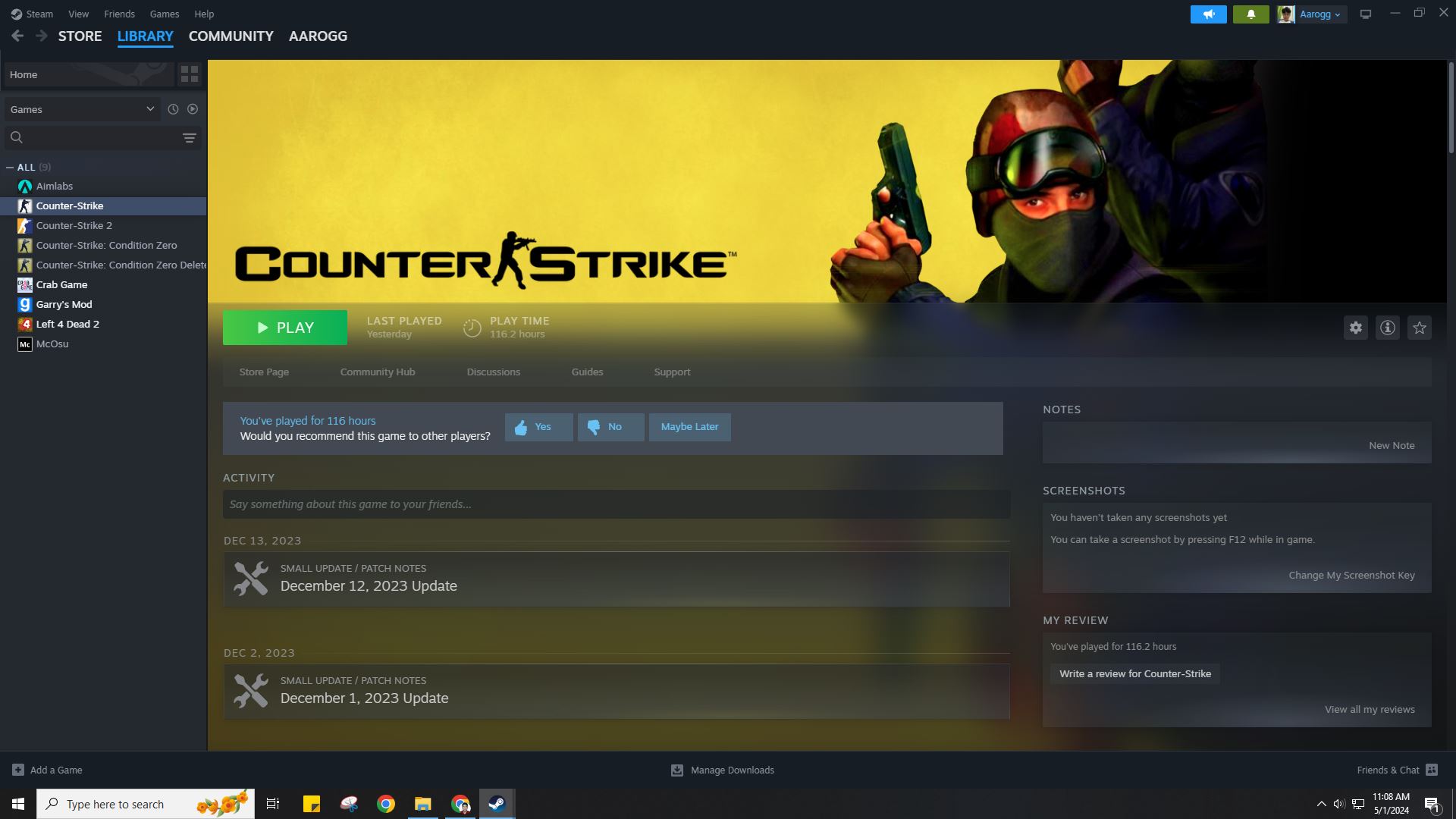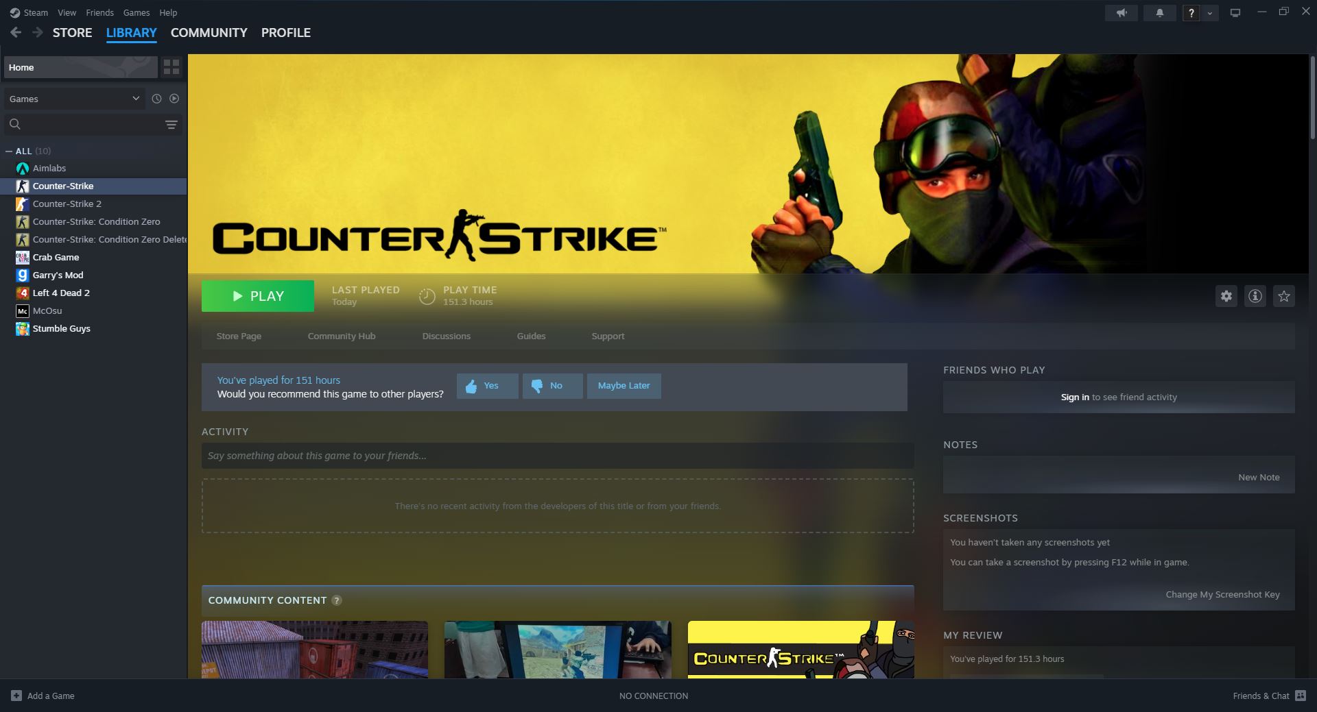 Steam Game Library Picture proof for CS 1.6 (If your profile or games are hidden):