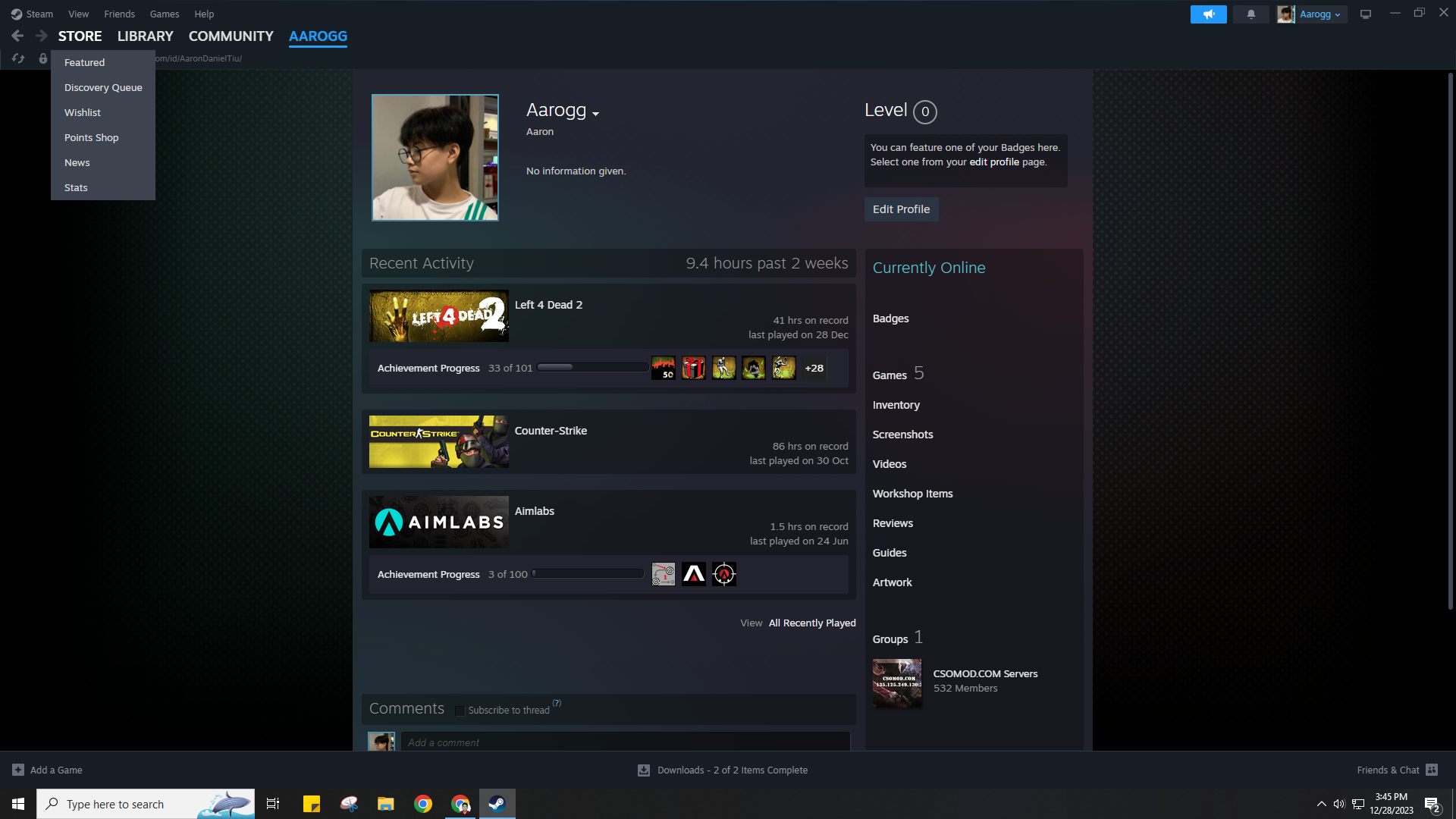 Steam profile link: https://steamcommunity.com/id/AaronDanielTiu/