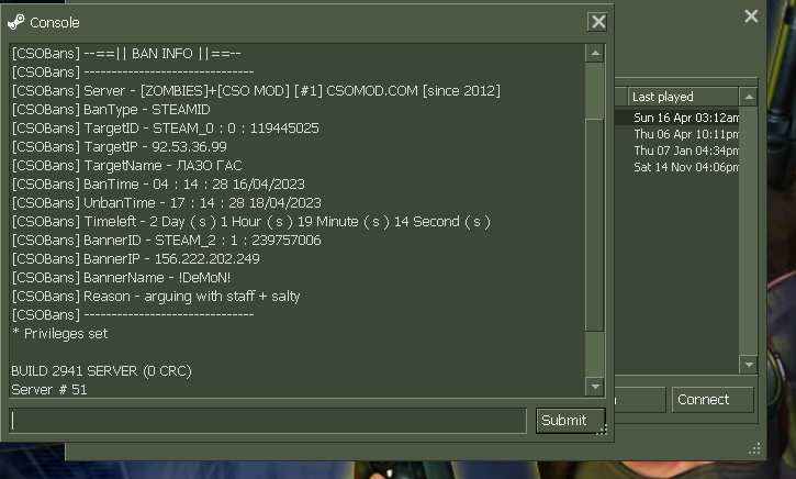 So it happened today in 3 am, i was drunk from a party and admin Demon gagged me because i was bunnyhopping, i wasn't but nevermind he gagged me and i kinda started arguing with him because of the gag and we started arguing eachother, it was mistake from both side, and this dude Demon banned me for 3 days, i think it's unfair and i'd like to request an unban if possible. I want to apologise to him because i was so wasted and drunk.