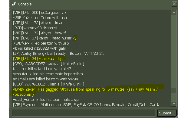 - Reason of complaint: bruh i just said kys which mean kill yourself which was in a friendly manner to a guy named Head_hunter, pretty sure this zeker named new staff thought kys mean kid you suck and gagged me 30 minutes instead of 5 minutes without any warning of abusive speech.