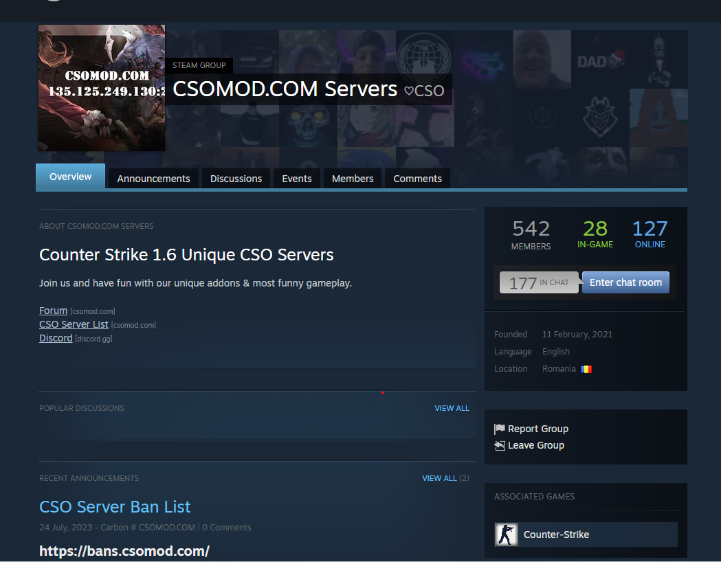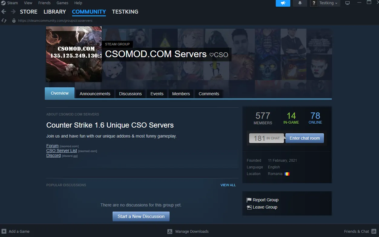 [CSO] - Free Slot for Steam players Testking February 22, 2024 at 8:46 AM Quote from Carbon Nickname : TestkingSteam Profile Link :https://steamcommunity.com/profiles/76561199595611252/Steam Game Library Picture proof for CS 1.6 (If your profile or games are hidden): Joined our Steam Group :