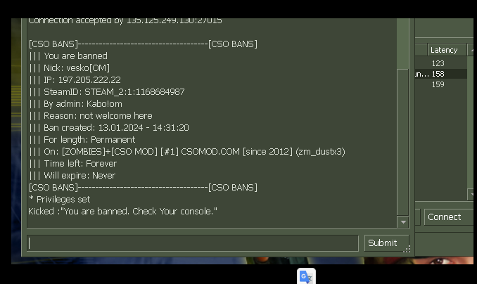 And I want to play. I told you to let me, this time I will never repeat it, I swear to you I will not do anything that violates the rules, I swear to you Give me a chance - Admin who banned you: kabo!om