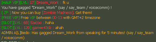 ADMIN A[L]Bedo: Has gagged Dream_Work from speaking for 5 minutes! (say / say_team / voicecomm)Firstly, you were not focusing on the match, and if I had waited a while, I would have for