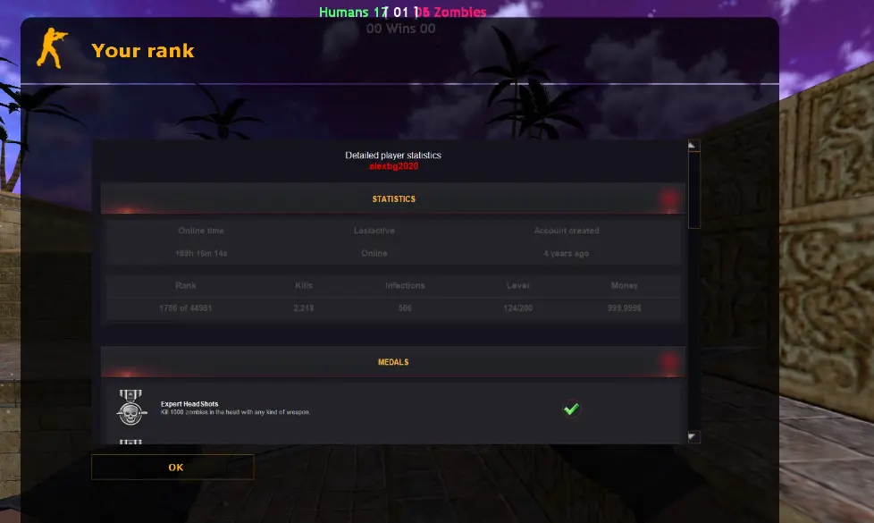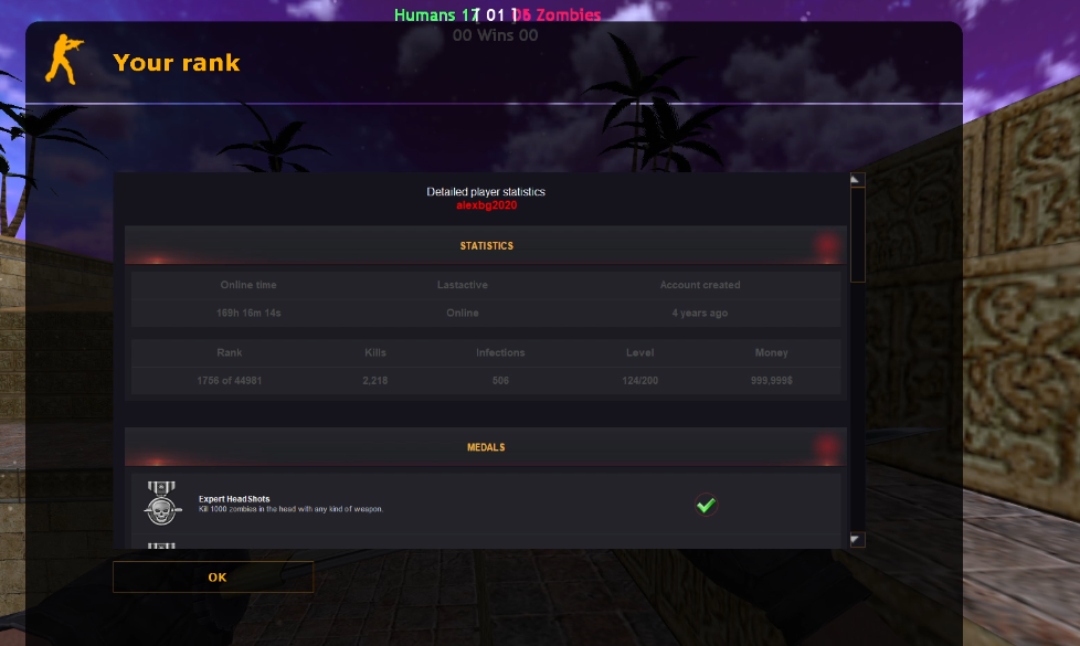 - Reason of complaint:Camping every round when he is a zombie (not attacking)