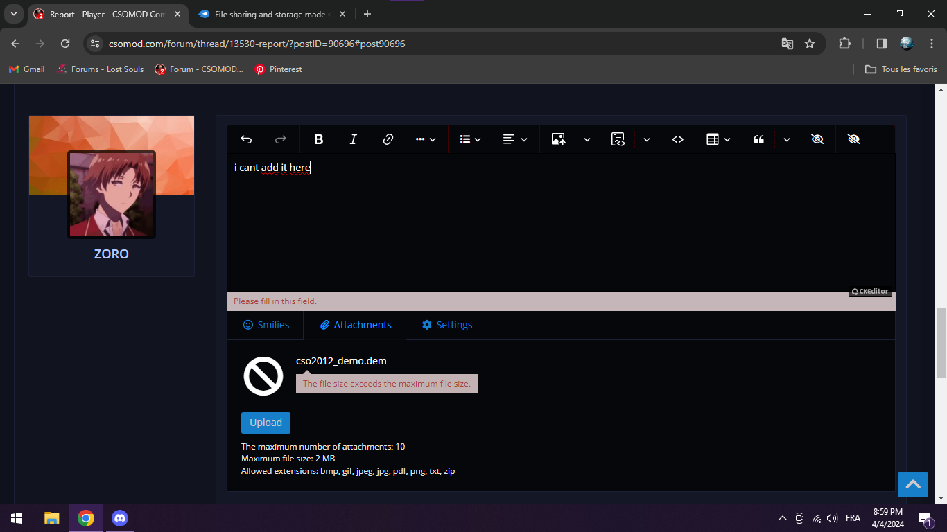 Link of hours you played on server on https://tsarvar.com/en/servers/cou…0:27015/players link (minimum 90h): https://tsarvar.com/en/player189121-ZORO