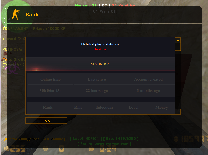 - Link of hours you played on server on gametracker.com link (minimum 30h):