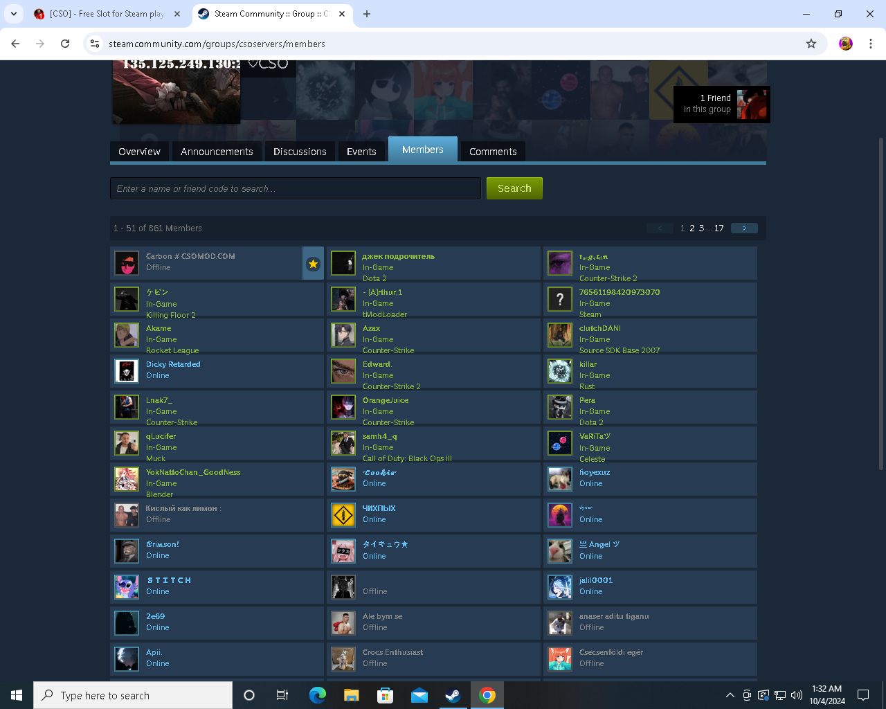 [CSO] - Free Slot for Steam players Instinct Clingy October 4, 2024 at 2:32 AM Nickname : ciganSteam Profile Link : https://steamcommunity.com/id/Loweffort/Steam Game Library Picture proof for CS 1.6 Joined Our Steam Group: