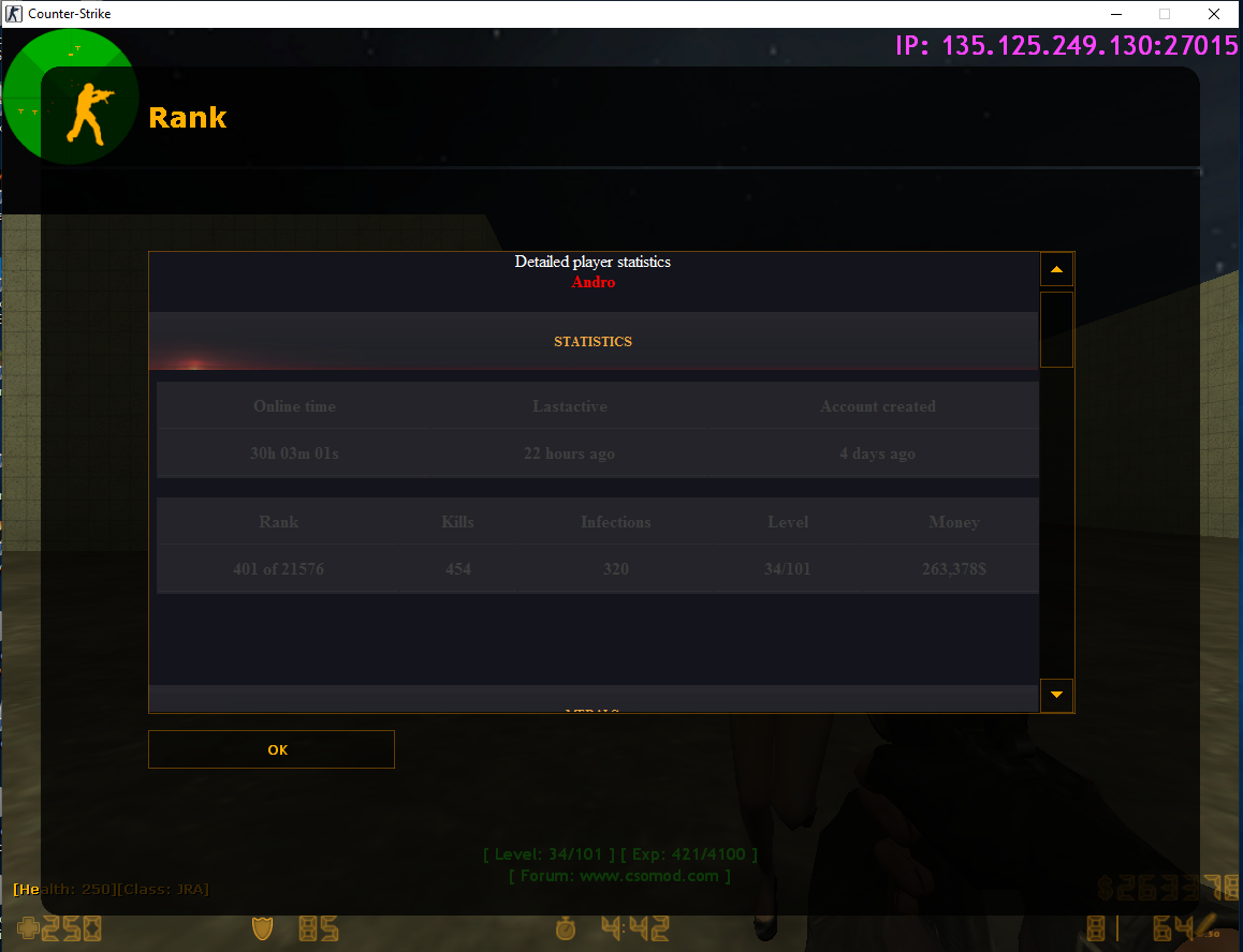 Request For Slot username is "Andro" Andro May 28, 2021 at 12:38 PM Nickname: AndroAge: 13Country: EgyptHow much time you can spend in the server ( per day - average ) : 2-6 hours per dayLink of hours you played on server on gametracker.com link (minimum 30h): Reason that you want to be Slot: i want to get the hammer and get some fun and help server