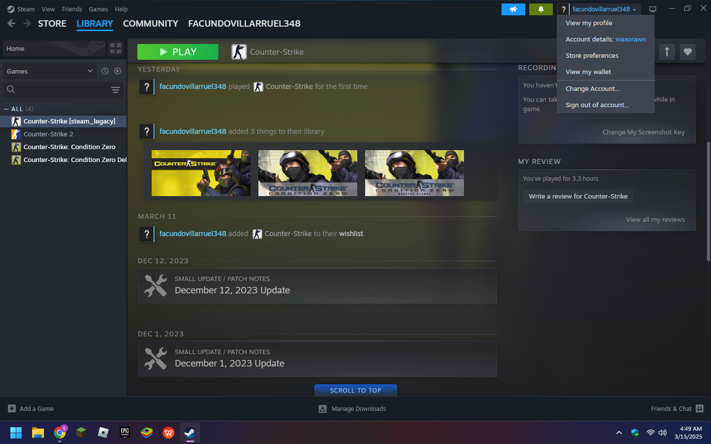 [CSO] - Free Slot for Steam players waxorawn March 15, 2025 at 7:05 PM nickname : WaxorawnSteam Profile Link : https://steamcommunity.com/profiles/76561199834054256/Steam Game Library Picture proof for CS 1.6 (If your profile or games are hidden):Joined ou Steam Group : Yes
