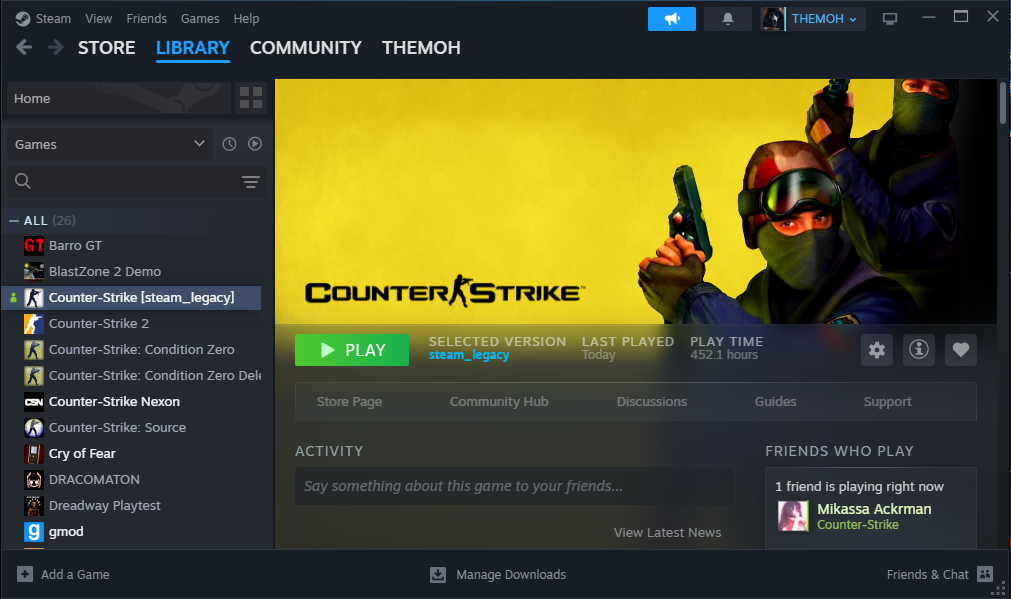 Steam Game Library Picture proof for CS 1.6 (If your profile or games are hidden):