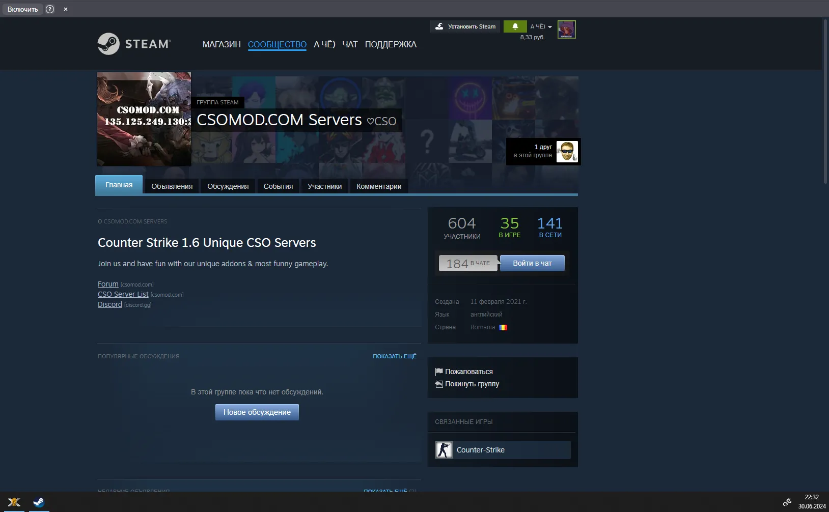 [CSO] - Free Slot for Steam players kofe May 21, 2025 at 12:05 AM Nickname :kofeSteam Profile Link : https://steamcommunity.com/profiles/76561198196277949/Steam Game Library Picture proof for CS 1.6 (If your profile or games are hidden): Joined our Steam Group :