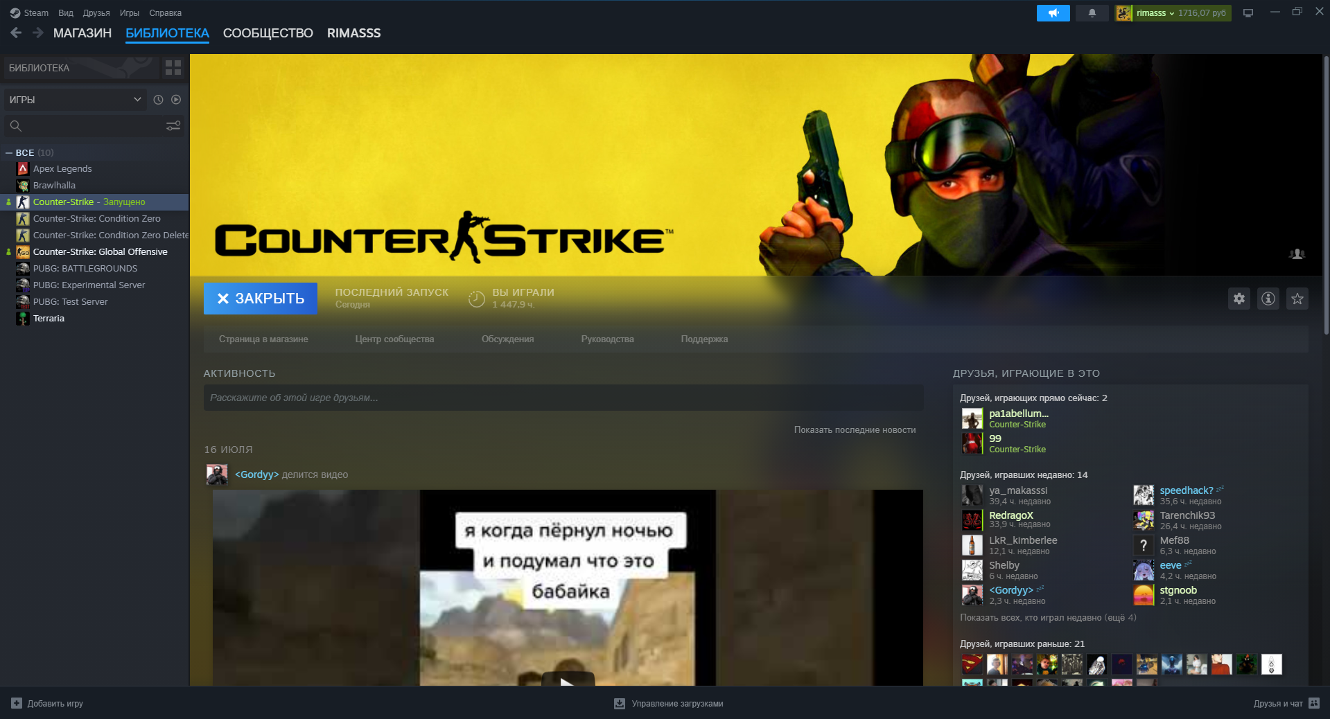 Steam Game Library Picture proof for CS 1.6 (If your profile or games are hidden):
