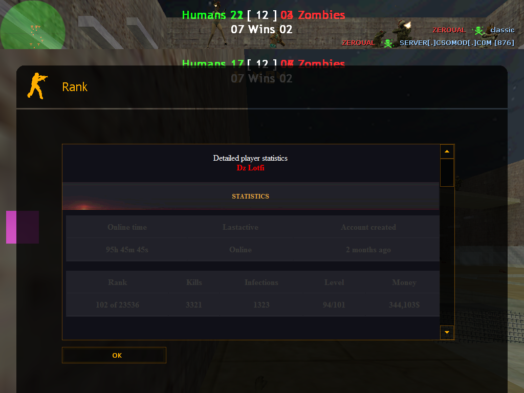 - Link of hours you played on server on gametracker.com link (minimum 90h):